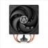 The Arctic Freezer 36 Multi Compatible Tower CPU Cooler is a high-performance cooling solution for both Intel and AMD systems. It supports Intel LGA1851 and LGA1700, as well as AMD AM5 and AM4 sockets, making it suitable for a wide range of modern PCs. With a Performance Index (PI) of 250 and a Normalized Noise Performance Index (NNPI) of 234, it provides effective cooling while producing minimum noise. The Arctic Freezer 36 CPU Cooler has four 6mm copper heatpipes and a fin stack of 59 aluminum fins, each 0.4mm thick, for efficient heat dissipation. Two P12 PWM PST fans, PWM-controlled and working at 200 to 1800 RPM, can decrease to 0 RPM at 5% PWM for silent operation under low loads, making them suitable for quiet computing situations. The Arctic Freezer 36 Multi Compatible Tower CPU Cooler's fan has a fluid dynamic bearing and consumes 0.10A at 12V DC. It connects via a 4-pin PWM connector with a 200mm cable and an 80mm splitter cable for flexible installation. Pre-applied MX-6 thermal paste (0.8g) improves thermal conductivity, allowing for quick use and excellent performance. The Arctic Freezer 36 Multi Compatible Tower CPU Cooler is engineered to withstand a wide range of temperatures, from 0 to 40°C.